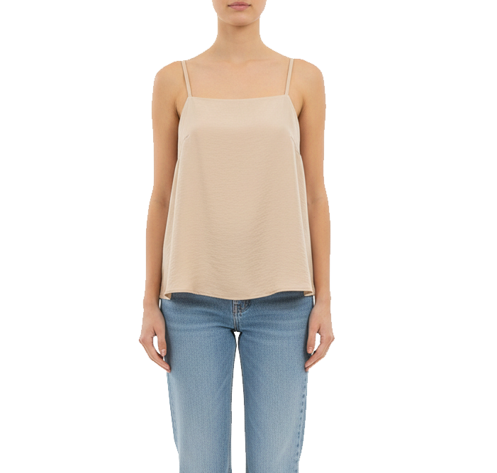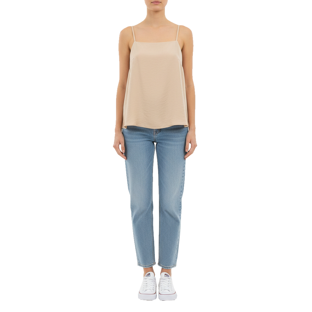 تاپ بندی ساده از جنس ویسکوز مودال با بافت نرم، نازک و لطیف، طراحیشده با بند قابل تنظیم برای فیت دلخواه؛ با استایل آزاد و ایستایی راحت، انتخابی کاربردی برای استایلهای مینیمال فصلهای گرم.